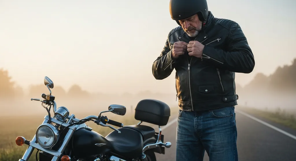 The biker adjusted his helmet before starting the engine.