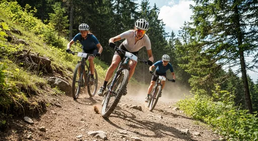The mountain trail was crowded with adventurous bikers tackling steep hills.