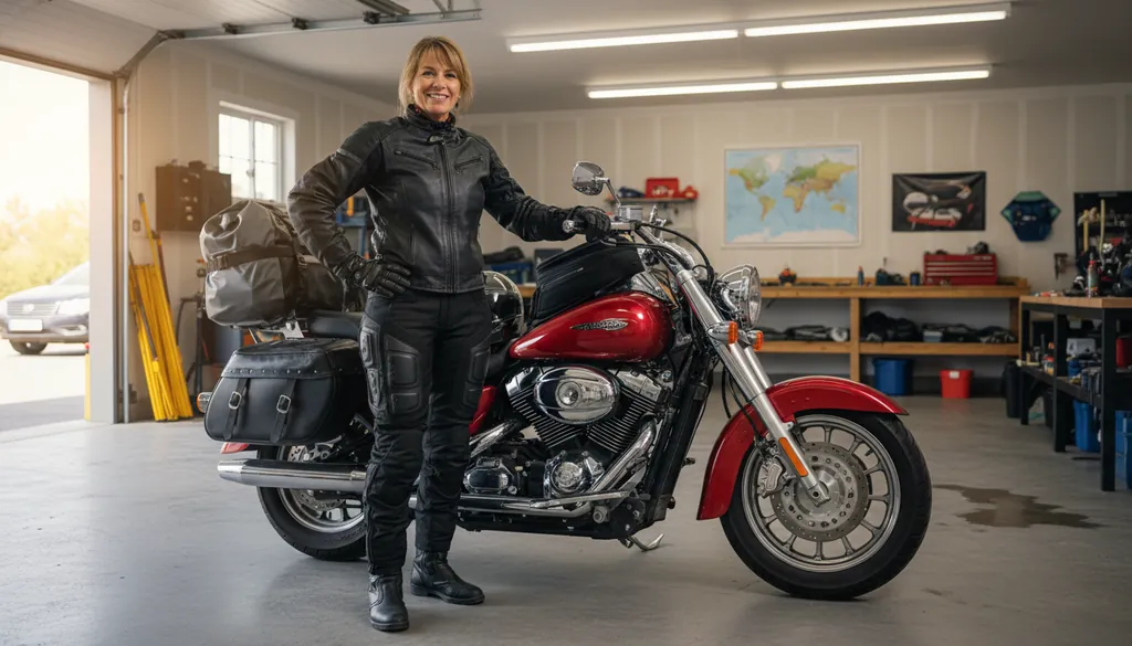 She bought a red motorcycle for long trips.