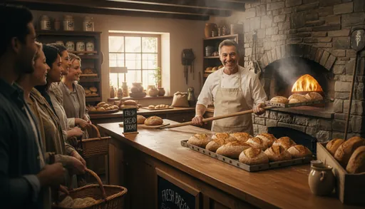 The baker offered us some freshly baked bread.