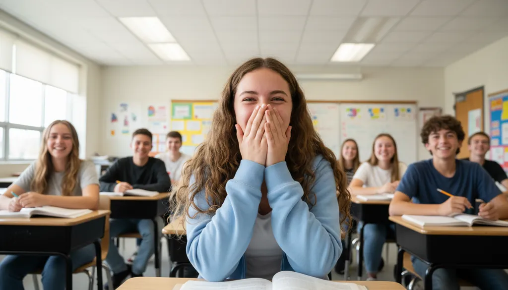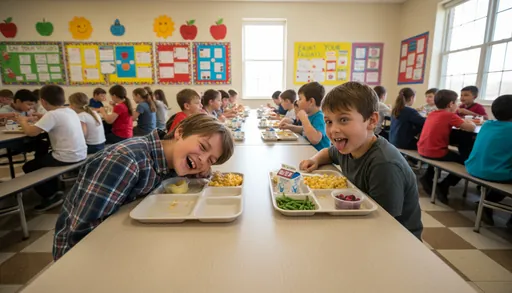 The boy giggled when his friend made a funny face.
