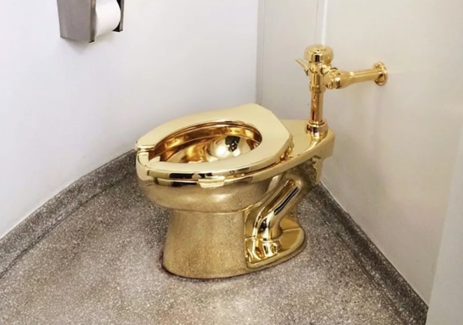 Italian artist Maurizio Cattelan made a toilet from solid 18-karat gold.